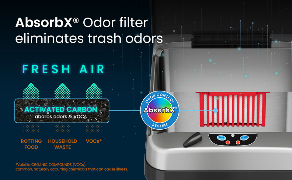 - Includes AbsorbX natural carbon odor filter to keep your kitchen smelling fresh