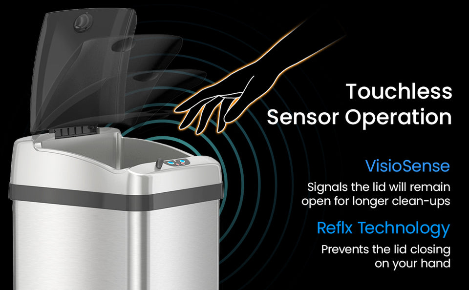 - Touchless operation with a sensor lid for a hygienic, hands-free experience