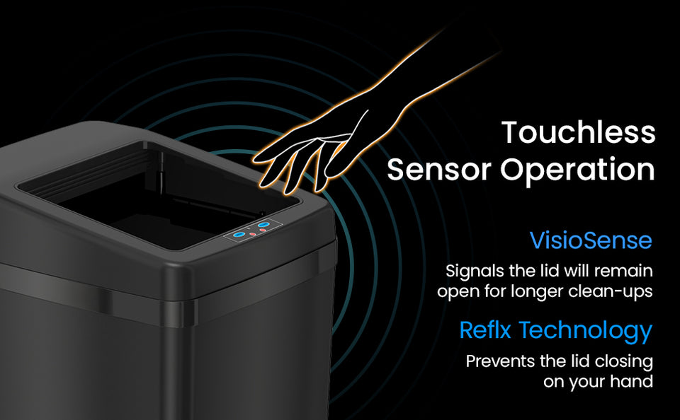 - Touchless, sensor-operated lid for hygienic, hands-free operation, ideal for automatic trash can needs