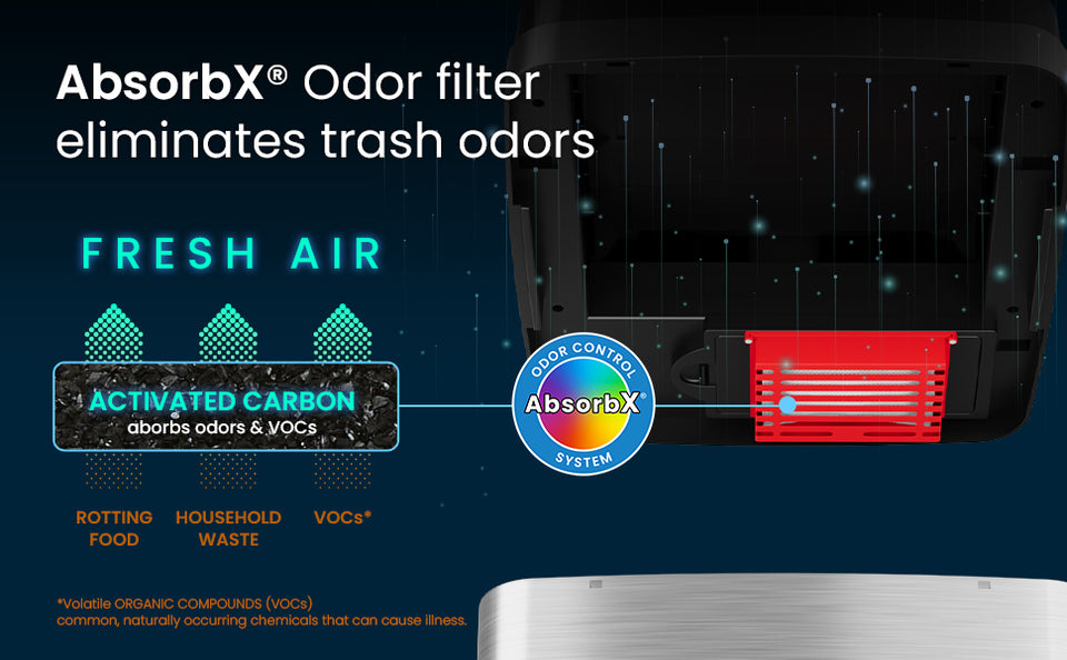 • AbsorbX natural carbon odor filter included to keep trash odors at bay