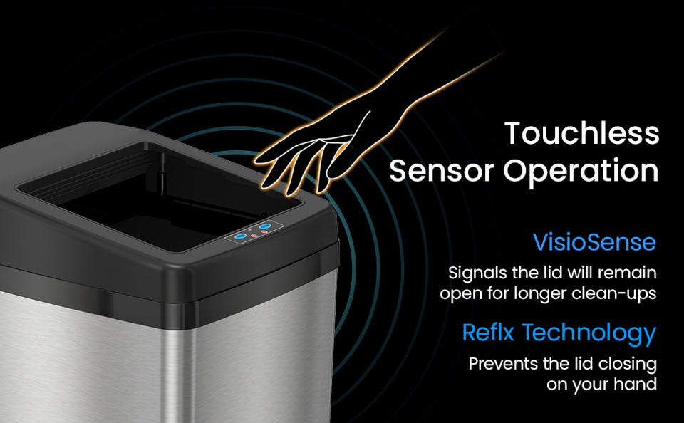 • Touchless sensor lid operation provides hygienic, hands-free use, perfect for busy kitchens or lidded bathroom trash cans