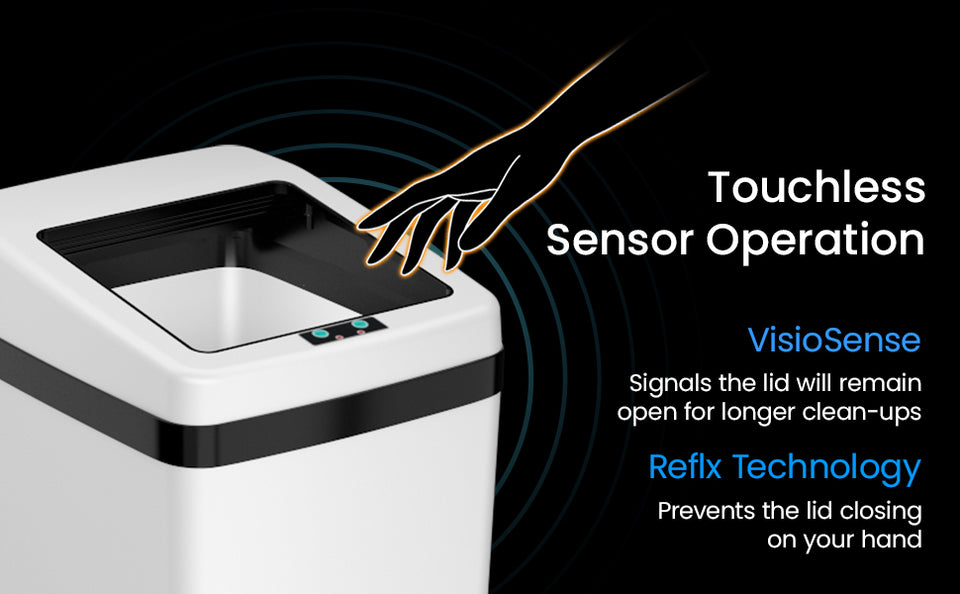 - Hygienic, touchless lid operation for hands-free convenience, making it the perfect automatic trash can