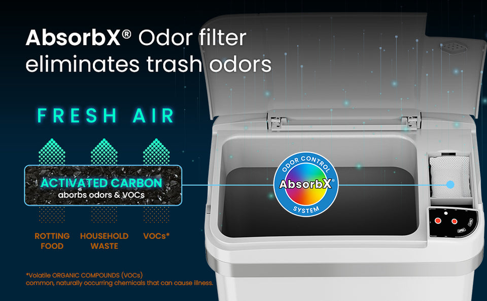 • Complete odor control with AbsorbX Odor Filter and Lemon Fragrance Cartridge included