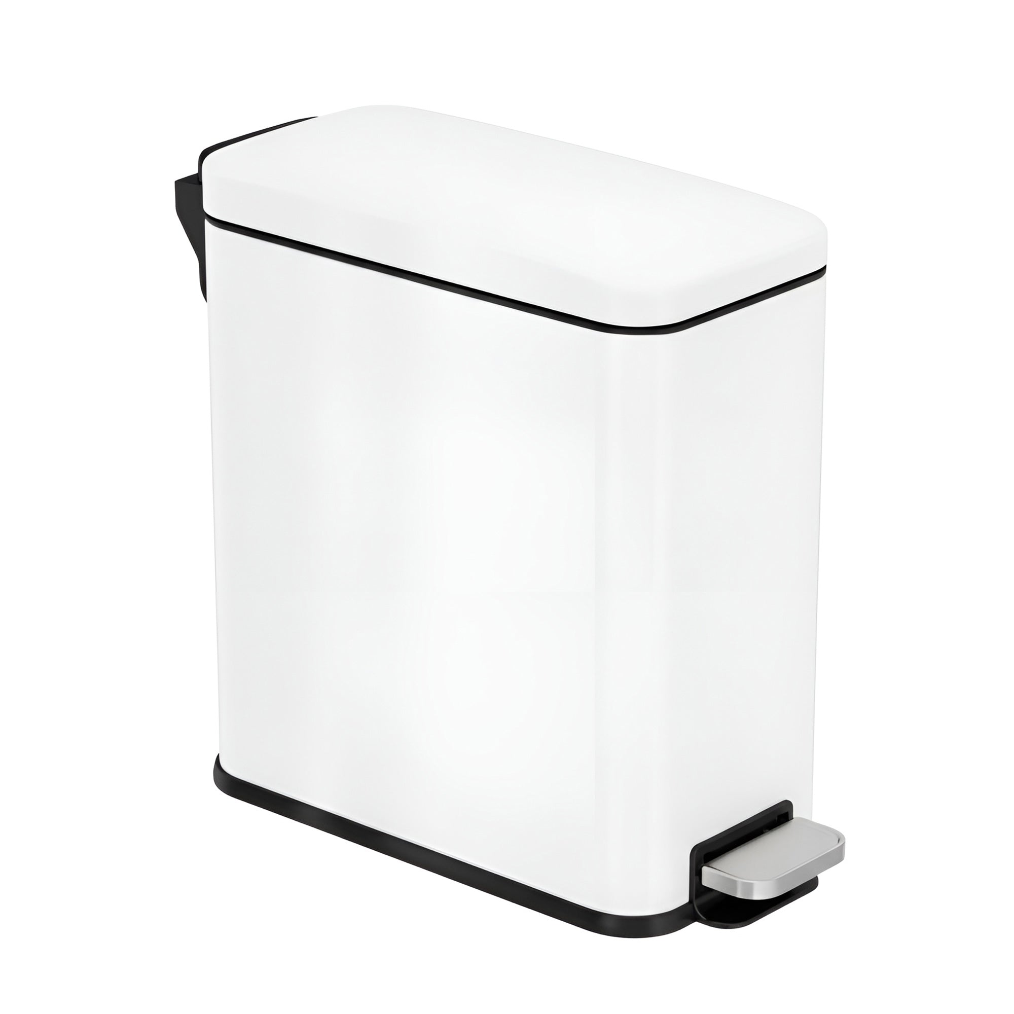 11.4 Liter / 3 Gallon SoftStep Chalk White Stainless Steel Slim Step Pedal Bathroom Trash Can with AbsorbX Odor Filter