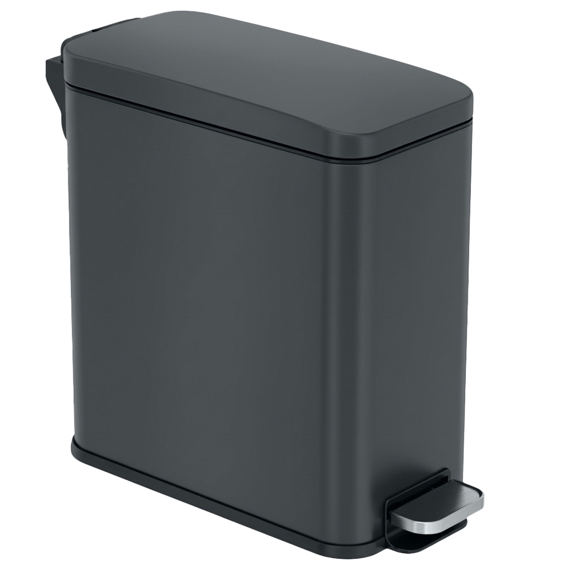 Upgrade your bathroom or workspace with the 3 Gallon / 11.4 Liter SoftStep Gunmetal Gray Stainless Steel Slim Step Pedal Bathroom Trash Can — the ideal compact waste solution for small spaces. Designed for both style and function, this sleek trash can features a slim, space-saving profile, smooth pedal operation, and a soft-close lid for quiet, hands-free convenience. The included AbsorbX® natural carbon odor filter keeps your area fresh and odor-free, while the fingerprint-proof stainless steel finish complements any modern décor.