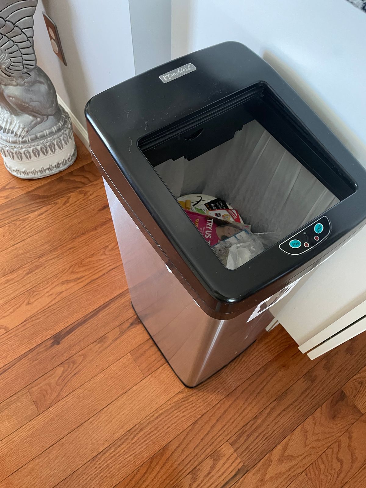 This plastic ring holds the trash bags in place nicely. I didn't realize it was gone for quite some time. Make sure it doesn't get accidentally thrown out when using. Make a world of difference.