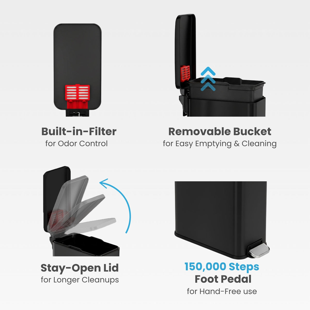 • Removable Inner Bucket — Simplifies trash disposal and cleaning.
