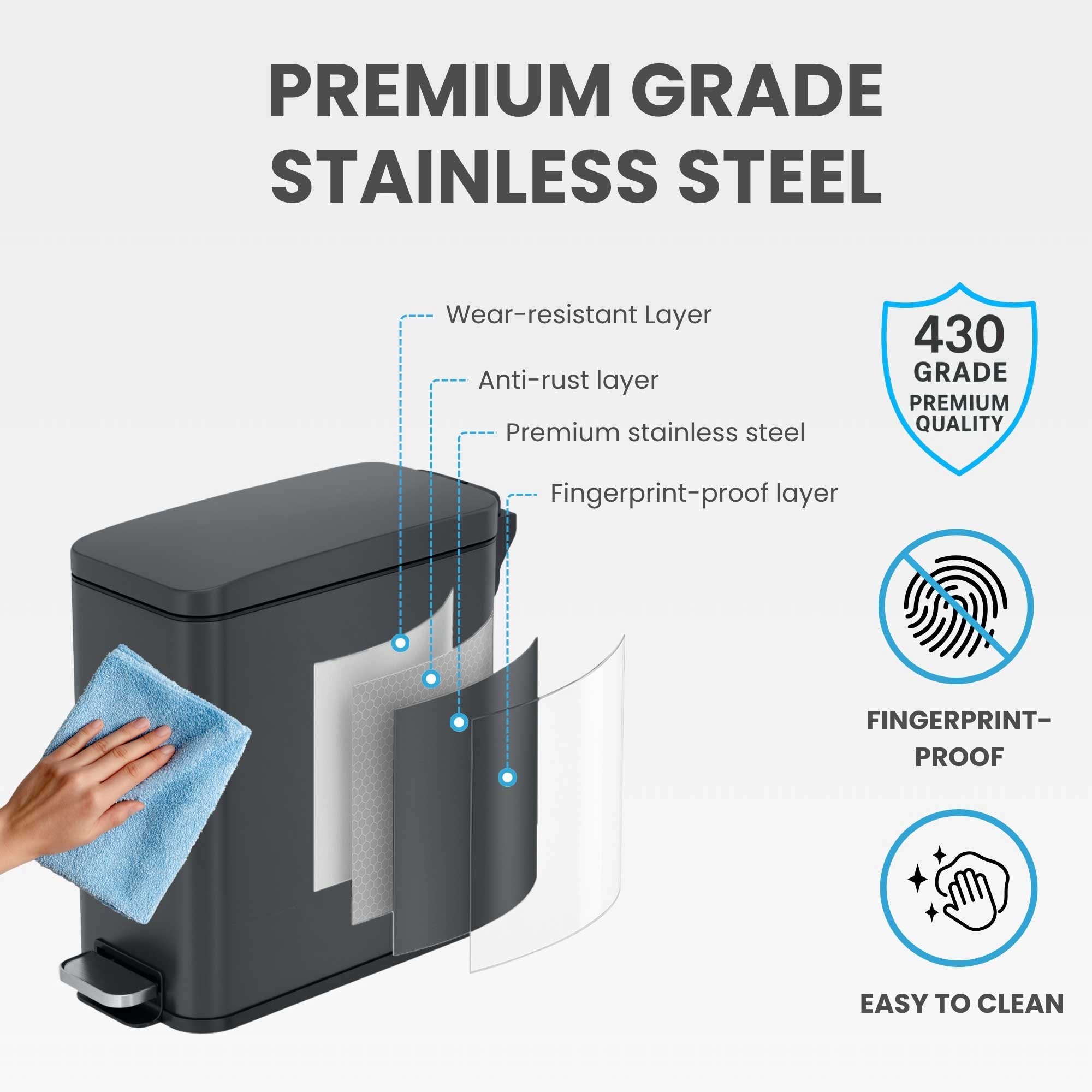 - Removable Inner Bucket — Simplifies trash disposal and cleaning.