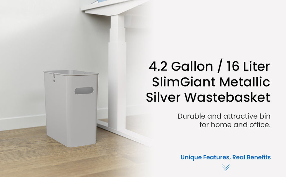 4.2 Gallon / 16 Liter SlimGiant Metallic Silver Wastebasket