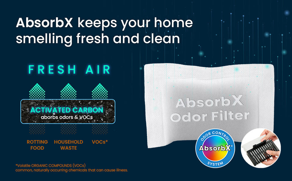 AbsorbX utilizes natural carbon technology to absorb smelly trash odors.