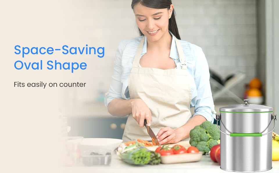 Large 1.6 Gallon / 6.1 Liter capacity holds days' worth of kitchen scraps.