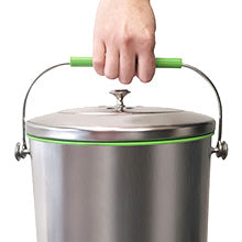 The sturdy, easy-grip stainless steel handle makes it easy to carry the bin to your yard or compost collection point.