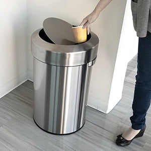 - Swing Top lid keeps garbage hidden and odors controlled, ideal for kitchens or offices