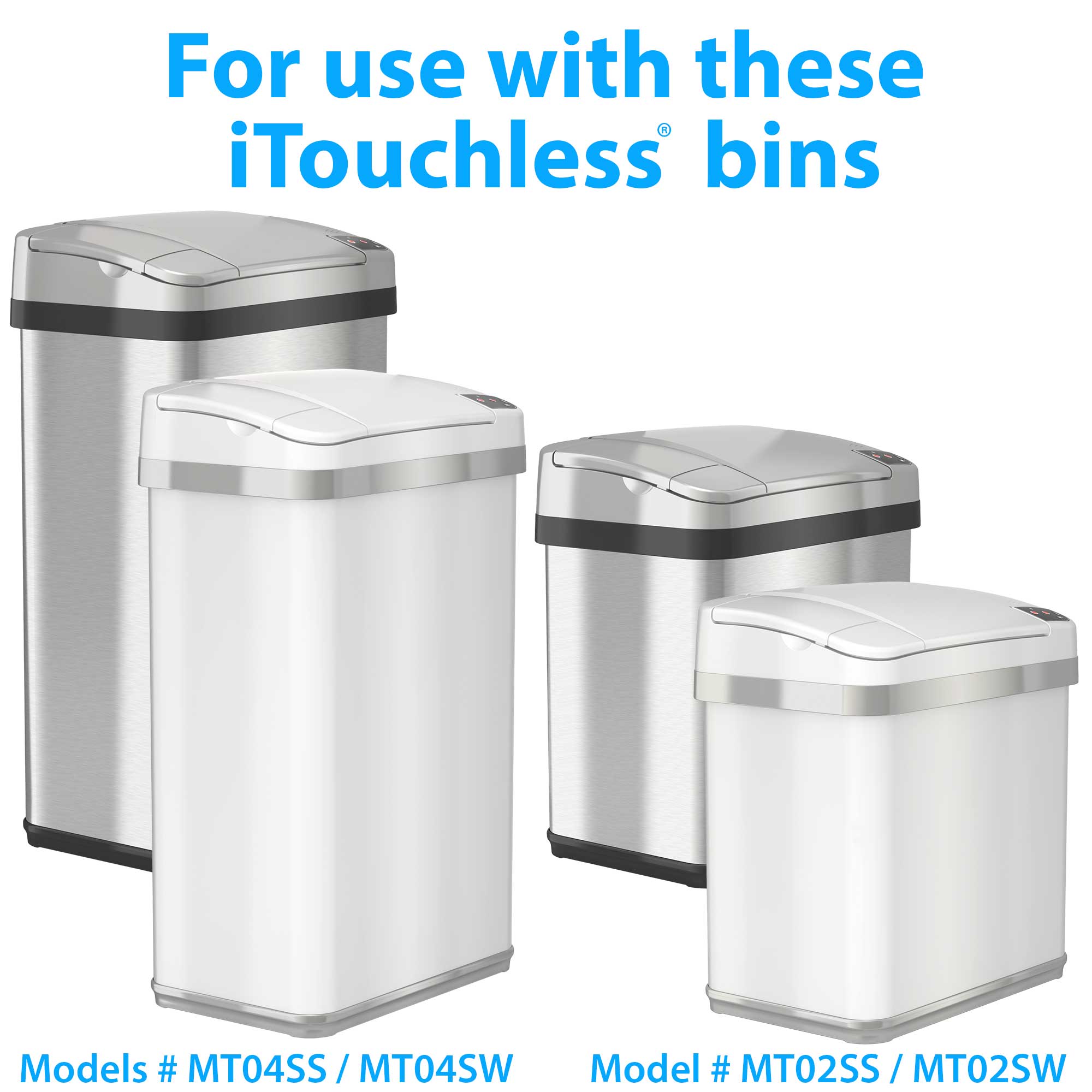 • Official iTouchless Product – For use with iTouhchless 2. 5 and 4 Gallon Sensor Trash Cans for Bathroom models: MT02SS, MT02SW, MT04SS, and MT04SW