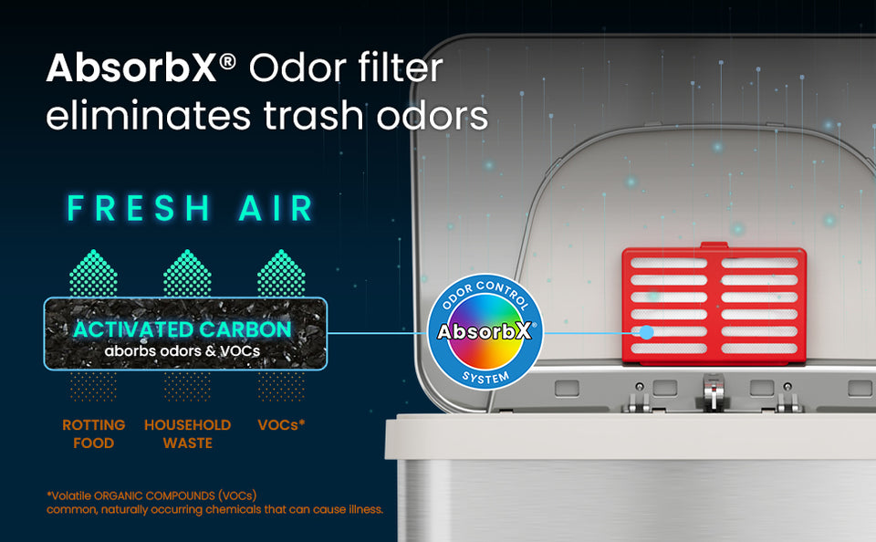 • Odor Elimination — Includes AbsorbX® natural carbon filter to neutralize and absorb unpleasant smells.