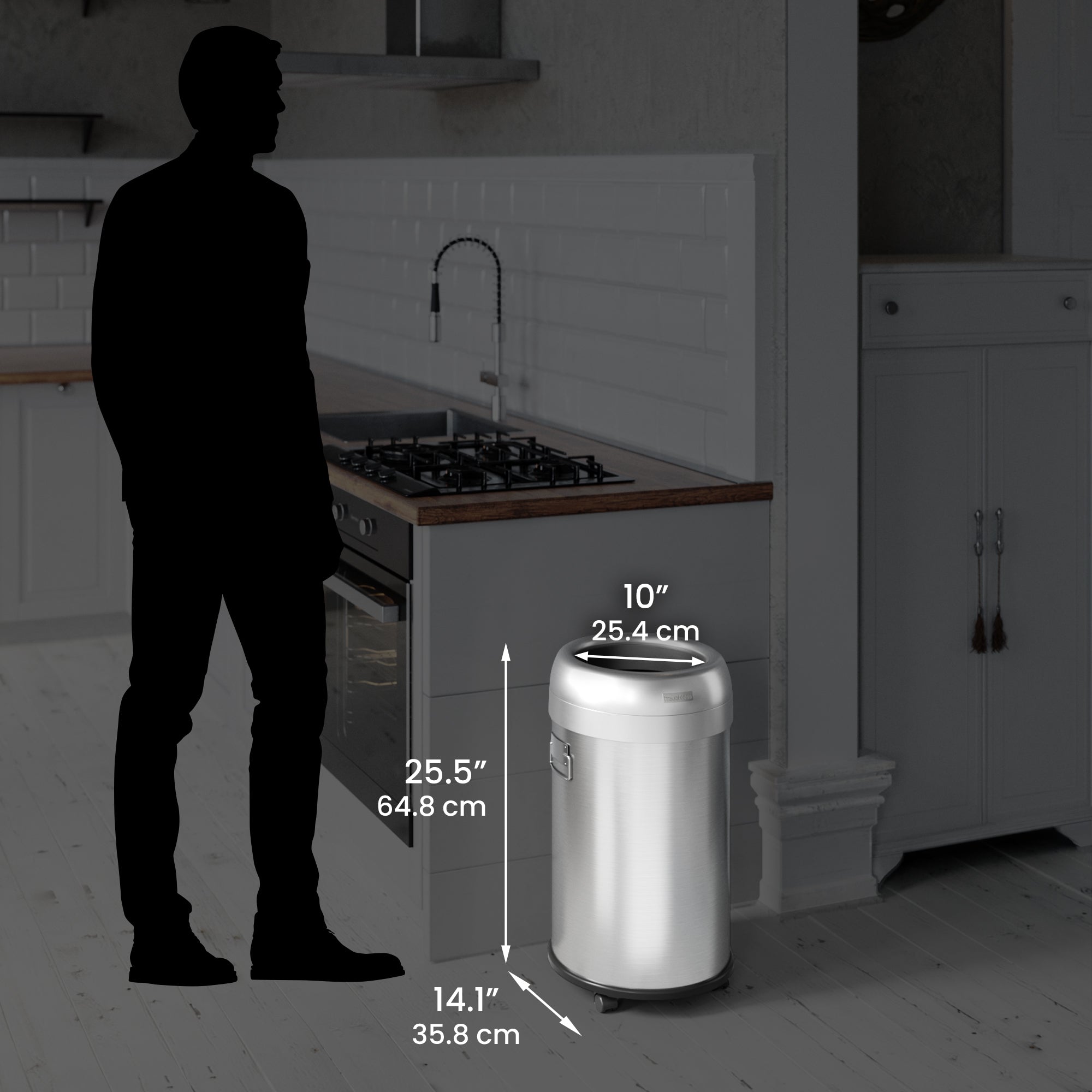 Make cleanup effortless with the 13 Gallon Stainless Steel Round Rolling Open Top Trash Can. Designed for convenience and style, this kitchen trash can features smooth-rolling wheels, a wide opening for easy disposals, and dual AbsorbX odor filters to eliminate unwanted odors. The fingerprint-proof stainless steel trash can body ensures a sleek, clean look perfect for any kitchen, office, or business.