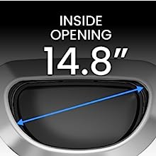 The extra-wide 14.8" opening makes it easy to dispose of milk cartons, pizza boxes and other big and bulky trash.