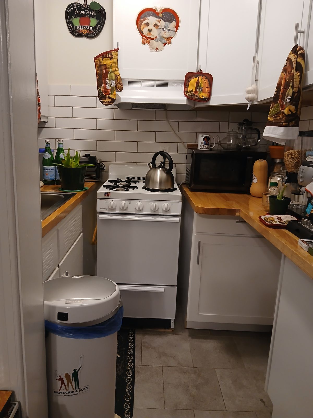 This Round White Stainless-Steel Sensor Trash Can fits perfectly in my new small kitchen!